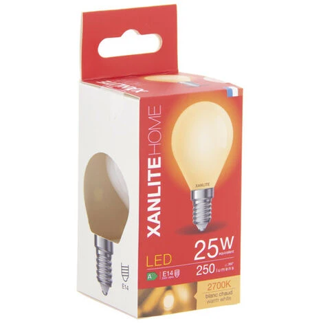 XANLITE – Ampoule Filament LED Opaque, Culot E14, 250 Lumens, Conso. 4W (eq. 25W), 2700K, Blanc Chaud – RFV250PO