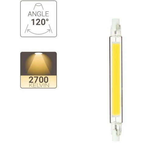 Ampoule RetroLED Crayon, au culot R7S permettant une installation simple et rapide. Avec sa température de couleur de 2700K (Kelvins) d’aspect blanc chaud, cette ampoule XanLite offrira un éclairage chaleureux à votre intérieur. Elle sera idéale pour vos moments de détentes dans les pièces à vivre et les chambres. Nous recommandons également ce produit pour les restaurants, les hôtels, les bars ou tout autre établissement voulant amener une ambiance relaxante et cocooning dans ses espaces.