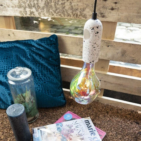Ampoule décorative unique avec sa forme atypique et son rendu de couleur arc-en-ciel exclusive.