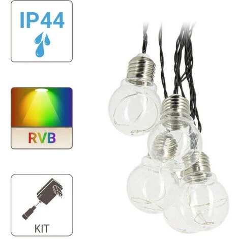 Guirlande LED (5m) composée de 10 ampoules au format P45, à la lumière multicolors.