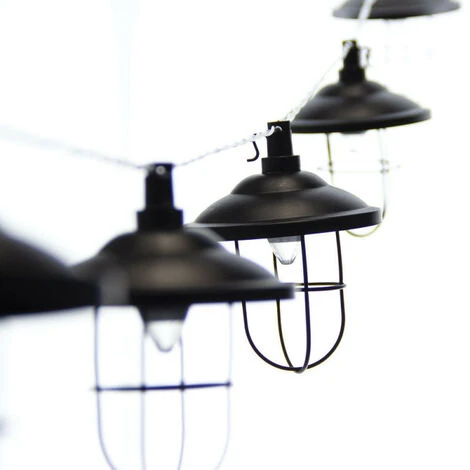 XANLITE – Guirlande Solaire Industrielle 5m IP44 – 10 Boules – Métal – Noir – GRL5INDUS