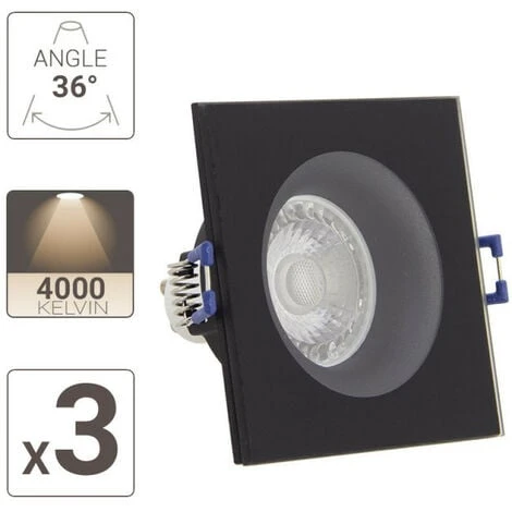 - Pack de 3 spots encastrés LED finition aluminium avec ampoules GU10 incluses