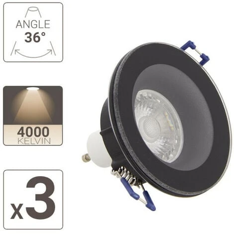 - Pack de 3 spots encastrés LED finition aluminium avec ampoules GU10 incluses