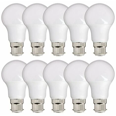 Lot de 10 Ampoules LED A60, culot B22, 10W cons. (60W eq.), lumière Blanc Chaud
