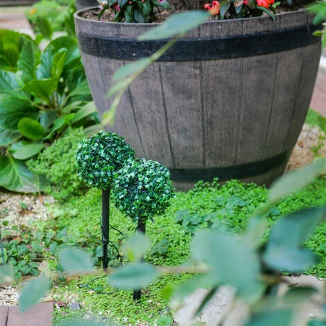 - Lot de 2 Piquets Buis LED solaires, finition plastique noir