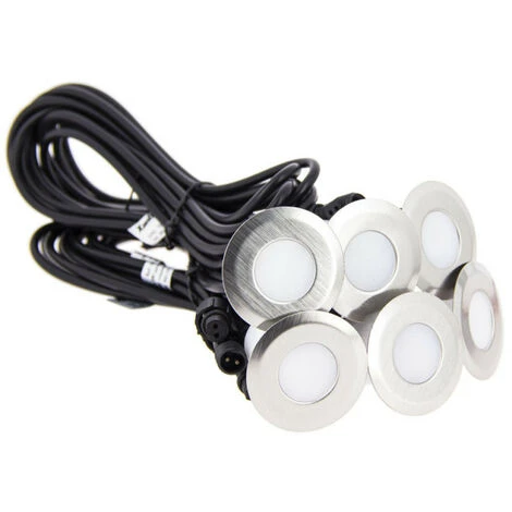 - Kit de 6 Spots LED encastrables extérieurs de 20 lumens par LED, finitions en inox 304 (résistant à la corrosion).
