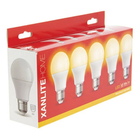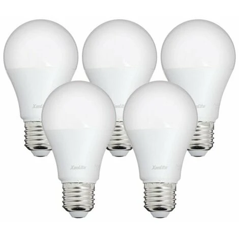 - Lot de 5 ampoules standards (A60) au culot à vis E27 (s’adapte à la majorité des luminaires).