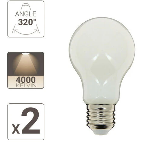 Lot x2 Ampoules à filament LED EDF, standard, opaque, culot E27, conso 8W eq. 75W, blanc neutre