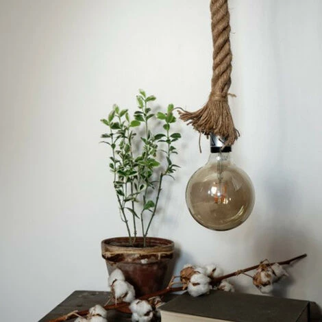 - Suspension vintage, en corde de chanvre pour ampoule à culot E27