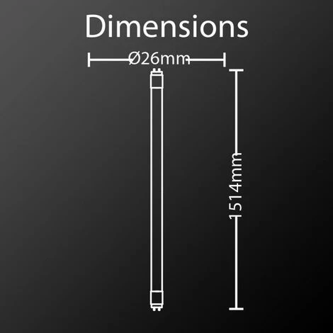 - Tube à LED de 1514 mm de long pour 26 mm de diamètre.